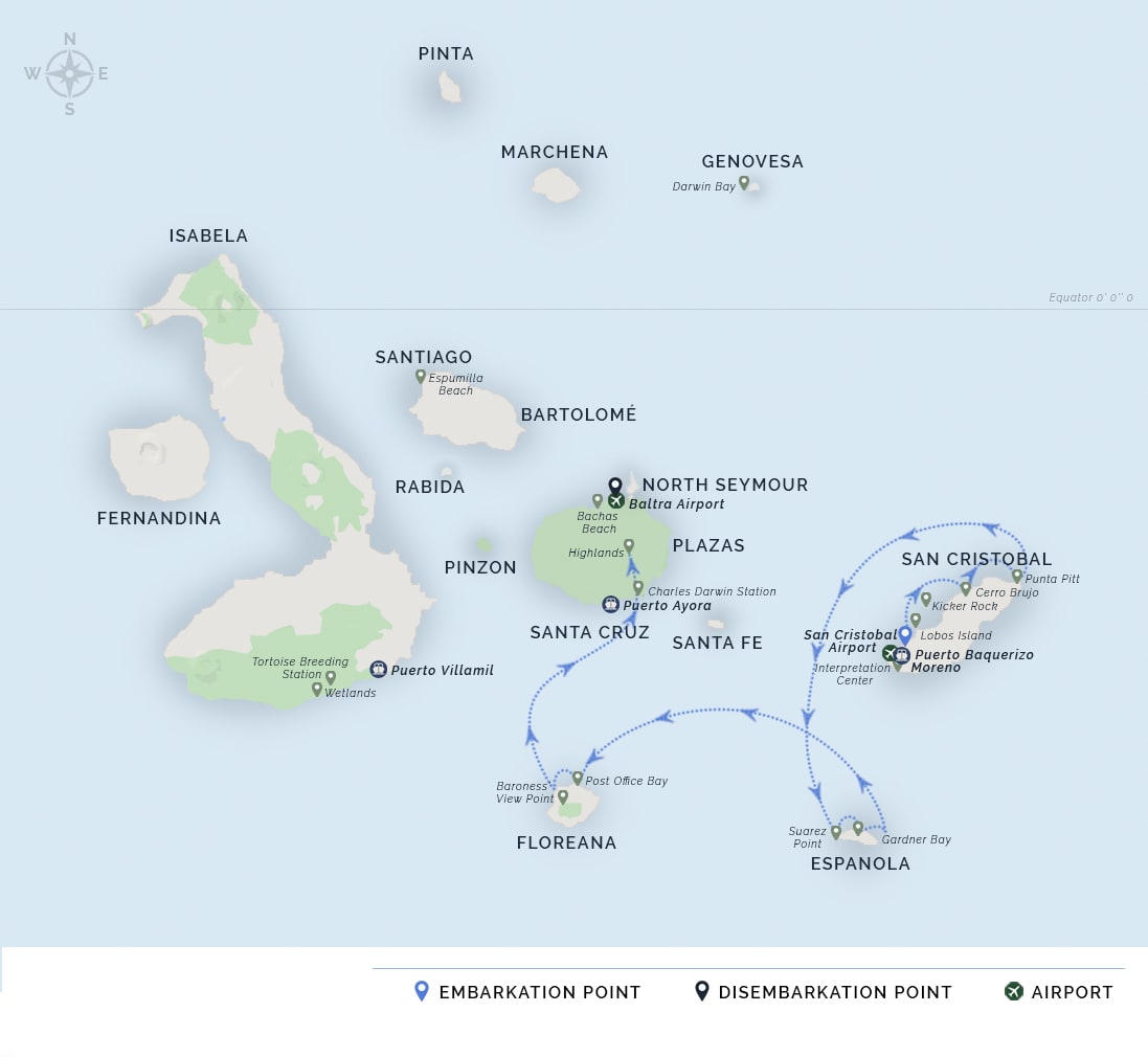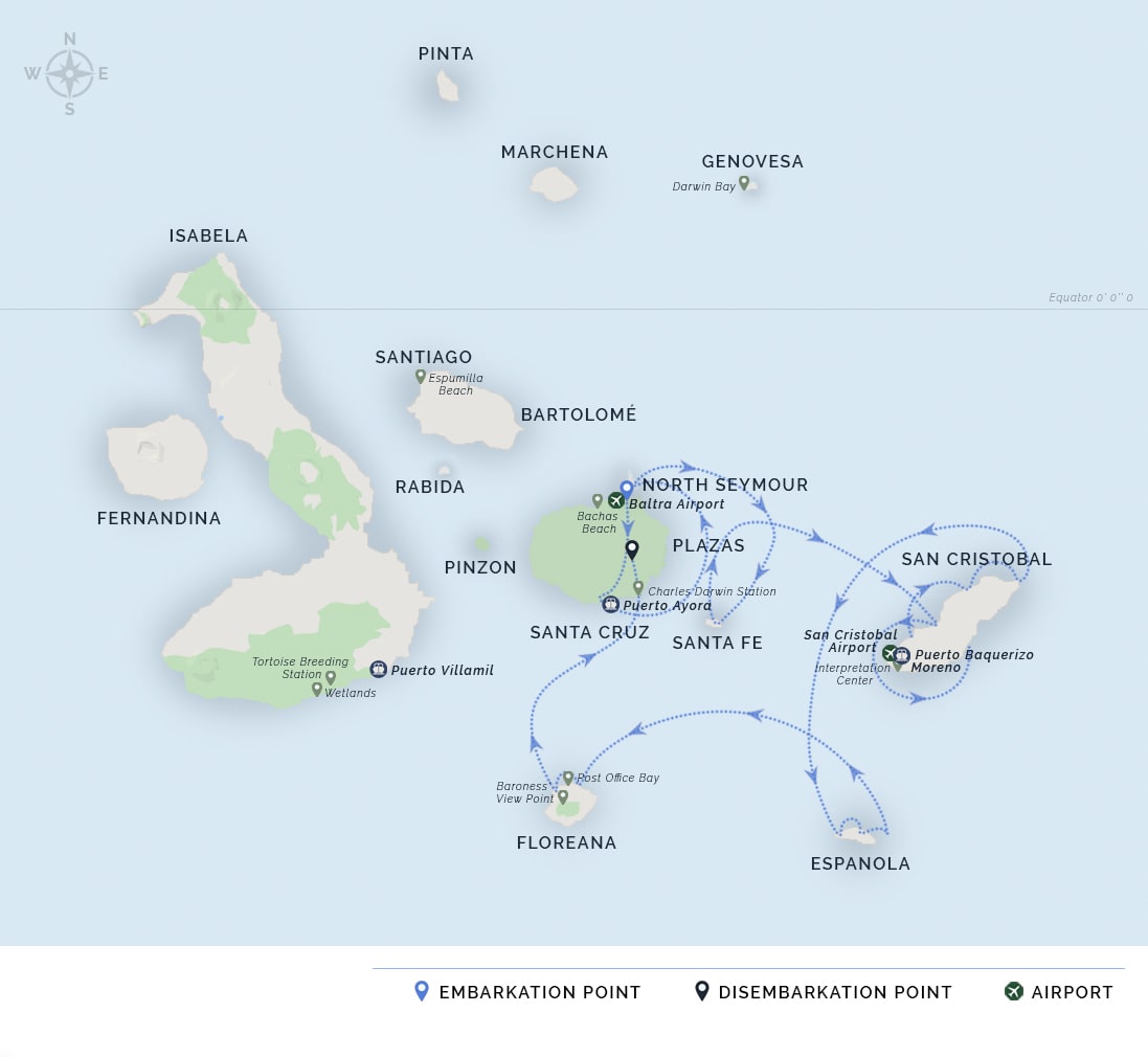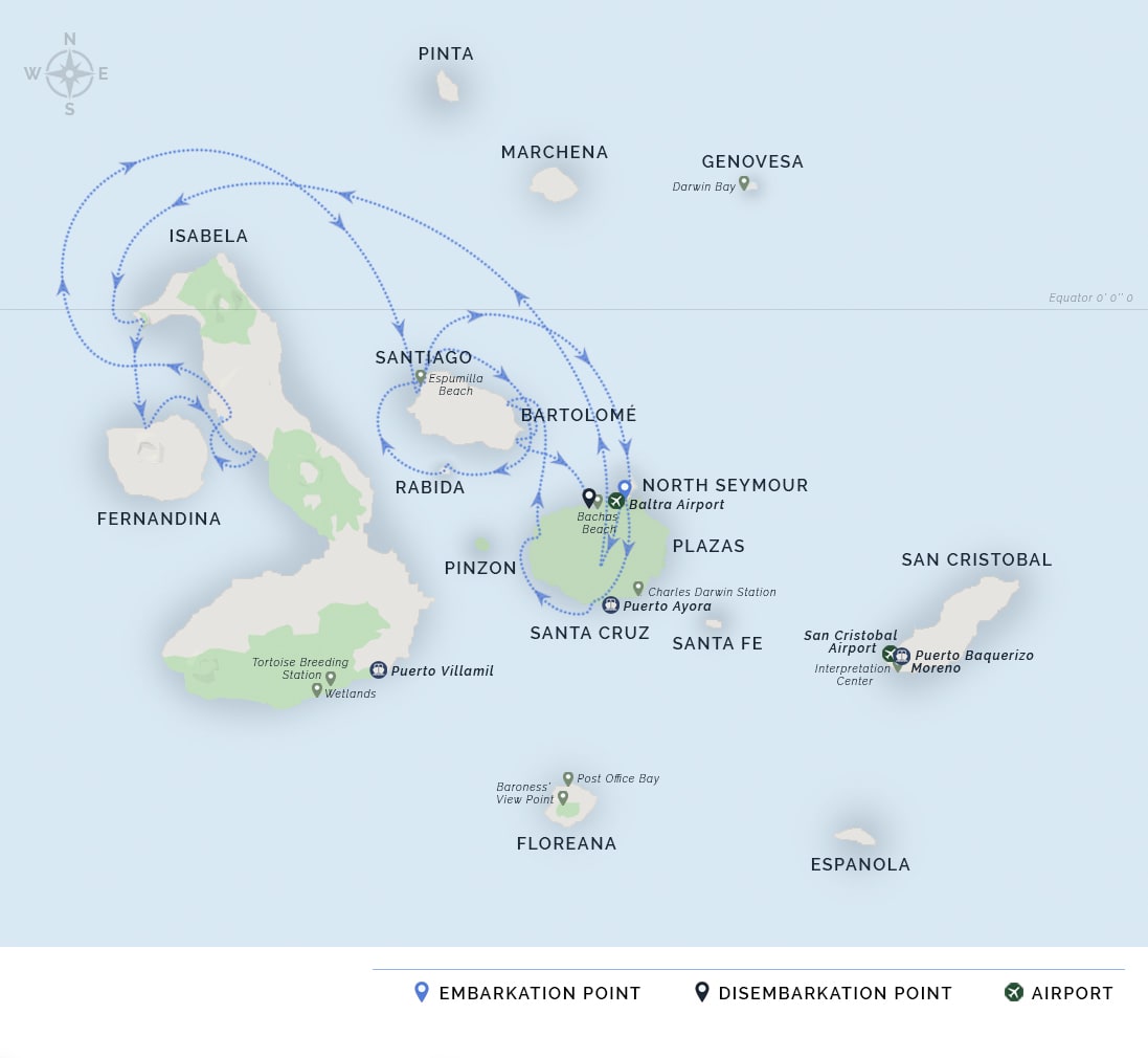 After the morning excursion, you will be assisted to Baltra airport for your flight to the mainland.
