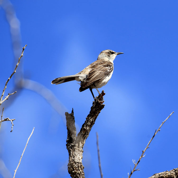 AM: Be marveled at the variety of sea life that uses the crevices of the lava cliffs for shelter. Red-billed Tropic birds fly overhead, switching between their nests and the bay, and a small colony of fur seals may be found near the landing site. You will be dropped off at a steep stairway that begins on rocks at the foot of a path that leads through a seabird colony full of Nazca and Red-footed Boobies. At the plateau, the trail continues inland allowing you to see more nesting booby colonies in the thin Palo Santo forest. Near the end of the trail, over a rocky lava plain, Wedge-rumped Storm-Petrels can be observed flying in all directions. If you are lucky, you may catch a glimpse of a Short-eared Owl.