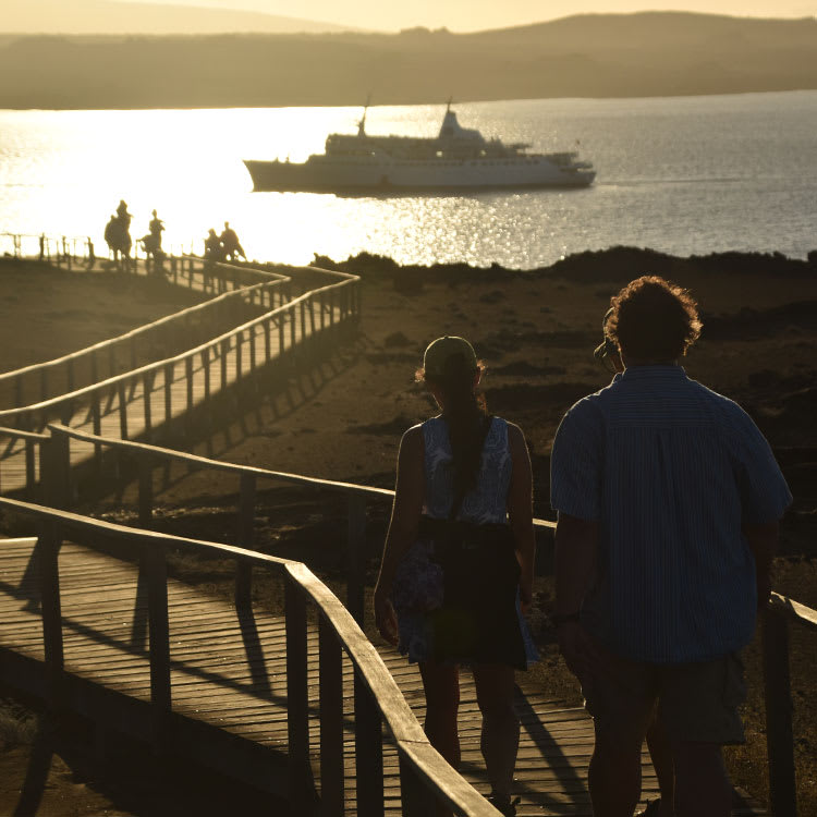 Depending on your itinerary, you could take a dingy ride to a rarely visited Black Turtle Cove on Santa Cruz Island. The area has been declared a turtle sanctuary, and the creatures frequently peek out of the water to greet visitors. You may also stop at Egas Port on Santiago Island to hike along a black volcanic sand beach to see a colony of fur seals swimming in rocky pools.