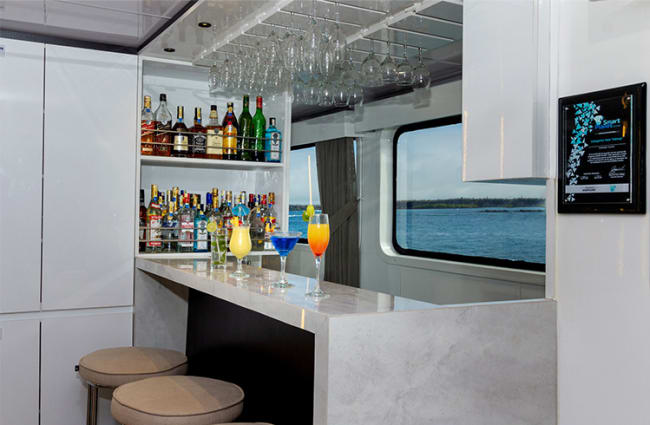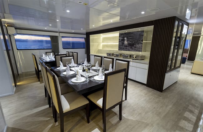 For some fun away from the sun, curl up on a sofa in the living room, play a board game, sign in to the all-new Mydas App for onboard entertainment such as movies, digital books, and educational material on the breathtaking Galapagos Islands. Thanks to a delicious selection of menu and buffet foods, all prepared by an expert chef, mealtimes are a highlight of each day. Local and international cuisine, including vegan and gluten-free options, are sure to delight.