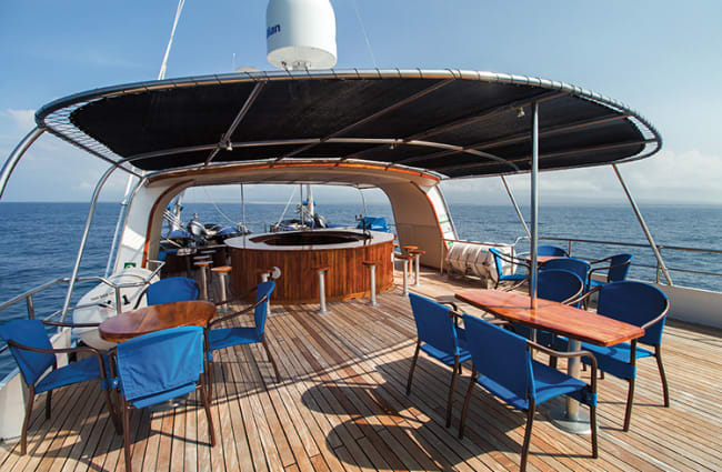 From the oversized swim platform at the back of the ship, where your onshore and at-sea adventures will often begin, to the extended bow designed for whale watching and wildlife gazing, the Integrity Galapagos allows you to make the most of your time in this fascinating part of the world. Days start early in the archipelago, and bird calls and the morning sun visible through the oversized windows in your stateroom will tempt you out of your comfortable king-, queen-, or twin-sized bed.