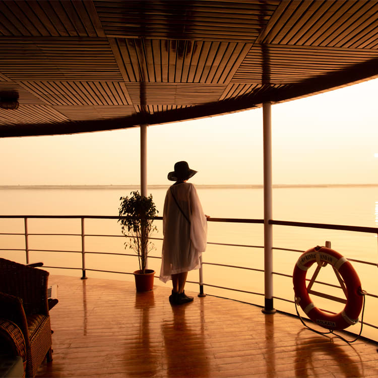 AM: Early morning moor in Kolkata Port and transfer to hotels or airport. Passengers with night flights may stay in their cabins and are at leisure during the day with a lunch served on board and a light supper prior to departure.