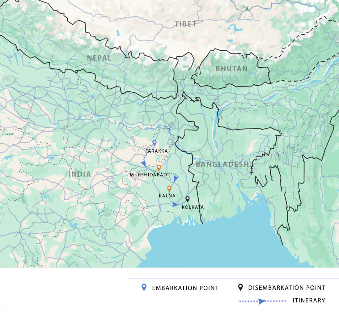 AM: After breakfast, disembark and receive a group transfer to your hotel or the train station in Farakka for your train journey back to Kolkata.