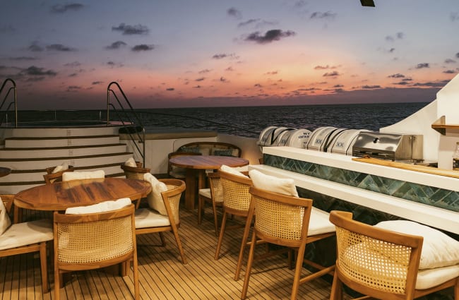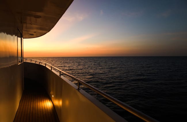 To nurture your mind and body, the boat offers a Fitness Temple, Wellness Retreat, and a spa. With your mind at peace, it’s time to jump into some watersports with the ever popular inflatable waterslide from the top deck and the floating, netted pool deck to the rear, which allows for safe ocean swimming without the fear of sea creatures nibbling you. There’s also wetsuits, fins, snorkel masks, paddle boards, kayaks, and Seabobs mounted with cameras for you use. Scuba diving, although not included as standard, is also available upon request.