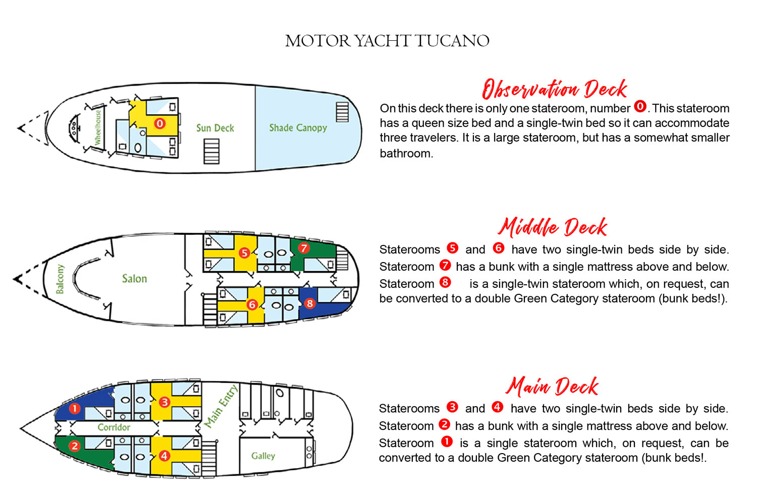 These blue cabins are ideal for single travelers, featuring private ensuite facilities equipped with basic amenities. The rooms are also air-conditioned to ensure guests stay comfortable, and provide gorgeous ocean views.