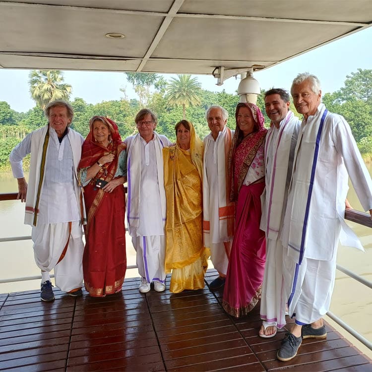 AM: Enjoy breakfast with an ever-changing view as you sail upstream, before landing at the country town of Kalna. Here you’ll take cycle rickshaws to see a group of some of Bengal’s most attractive terracotta temples, as well as the unique Shiva temple with its concentric rings made up of 108 shrinelets. Continue on through the countryside to Mayapur to visit the vast new ISKCON (International Society for Krishna Consciousness) temple which dominates the skyline. As the headquarters of ISKCON, or the Hare Krishna movement, the temple receives over a million singing and dancing devotees a year from around the world.