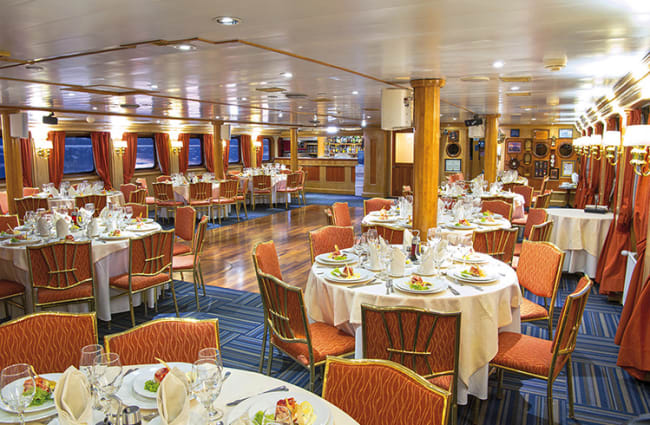 With 45 cabins for just 90 passengers spread across five decks, each featuring lower beds, plasma TVs, and spacious private bathrooms, the ship beckons intrepid travelers with an intimate setting where comfort is paramount and service levels sublime.
