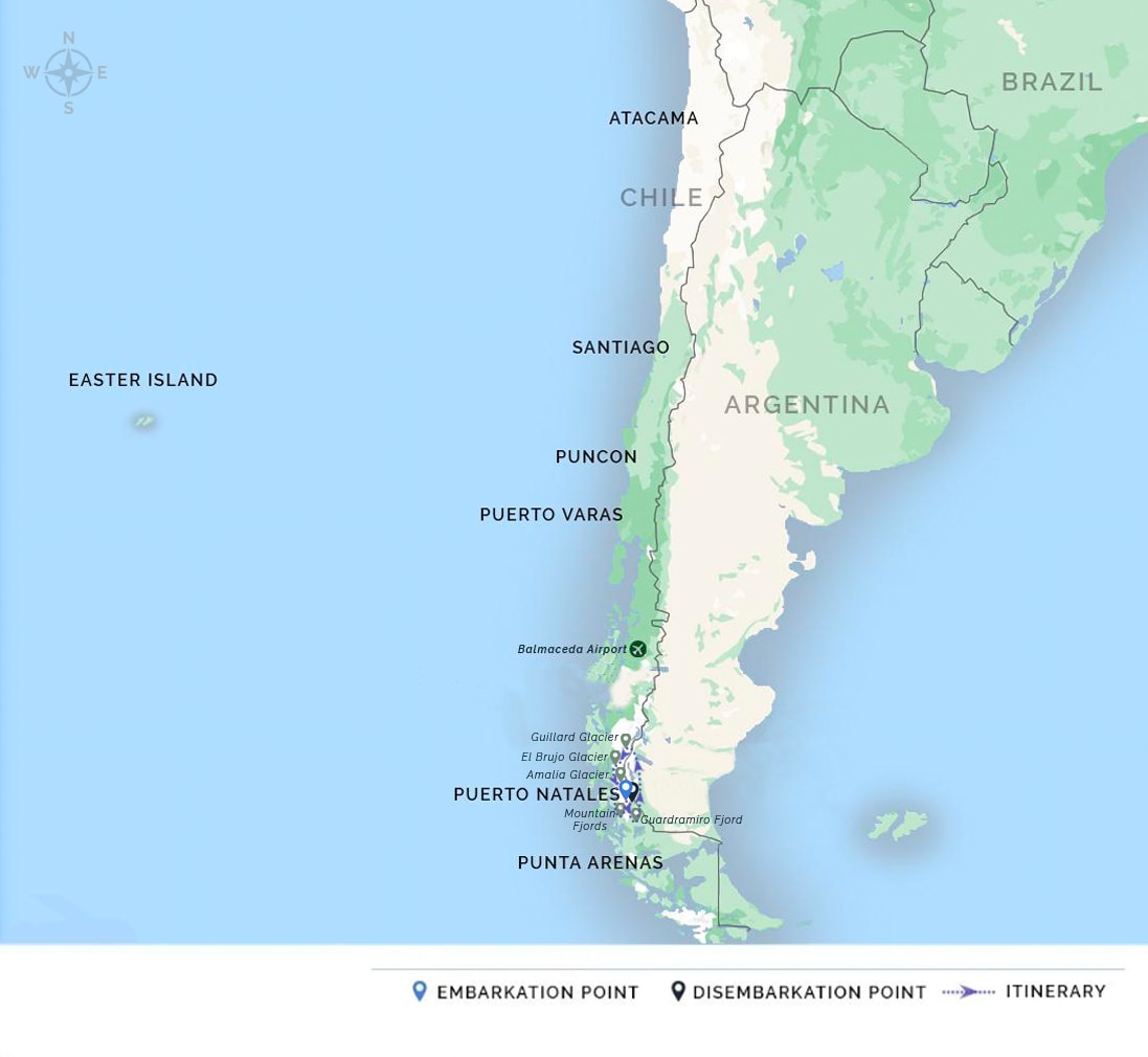 AM: After an overnight cruise that takes us back to Puerto Natales, we anchor off before 07.00h and disembarkation is scheduled for around 08.00h to 9.30h